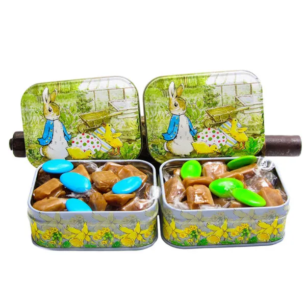 12 Gavebokser med 70 gram Myke Fløtekarameller og Grønne Sjokoladedrops med mørk sjokolade